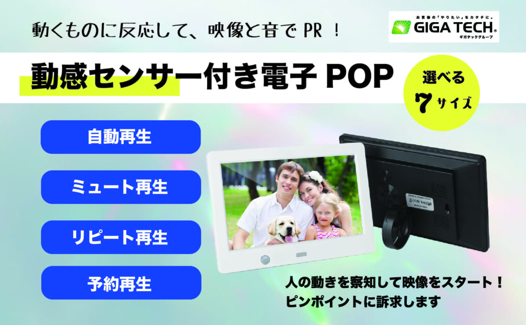 ギガテックでは、動感センサー付き電子POPを発売します。