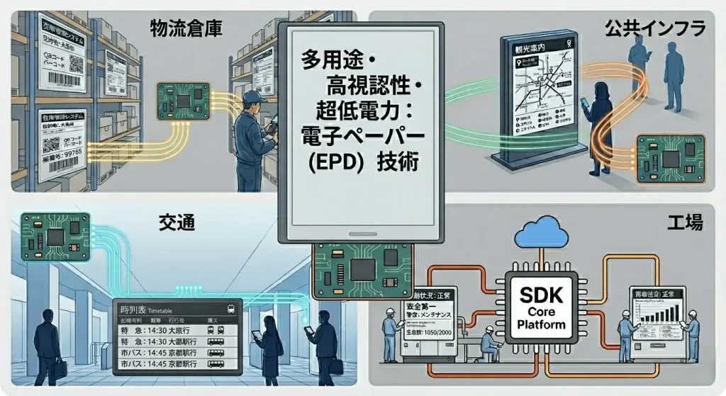 電子ペーパー(EPD)は、表示維持に電力を消費しない特性を持つ表示デバイスです。